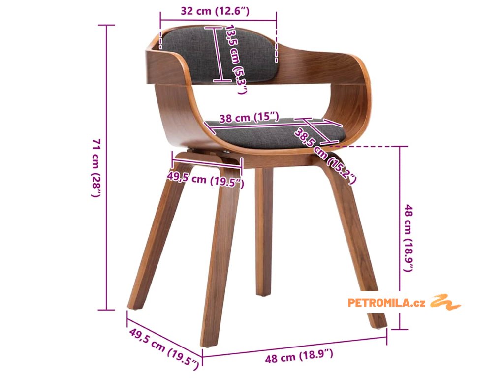 - Barva: tmavě šedé polstrování + tmavě hnědý rám