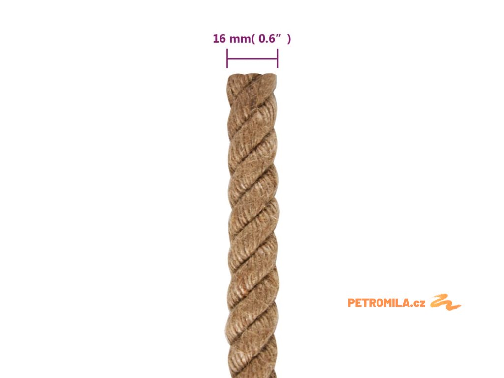 - Přírodní materiál: Toto jutové lano je pevně spletené ze 3 jemnějších pramenů 100% přírodní juty, je silné, pružné, odolné vůči povětrnostním vlivům a bezpečné.