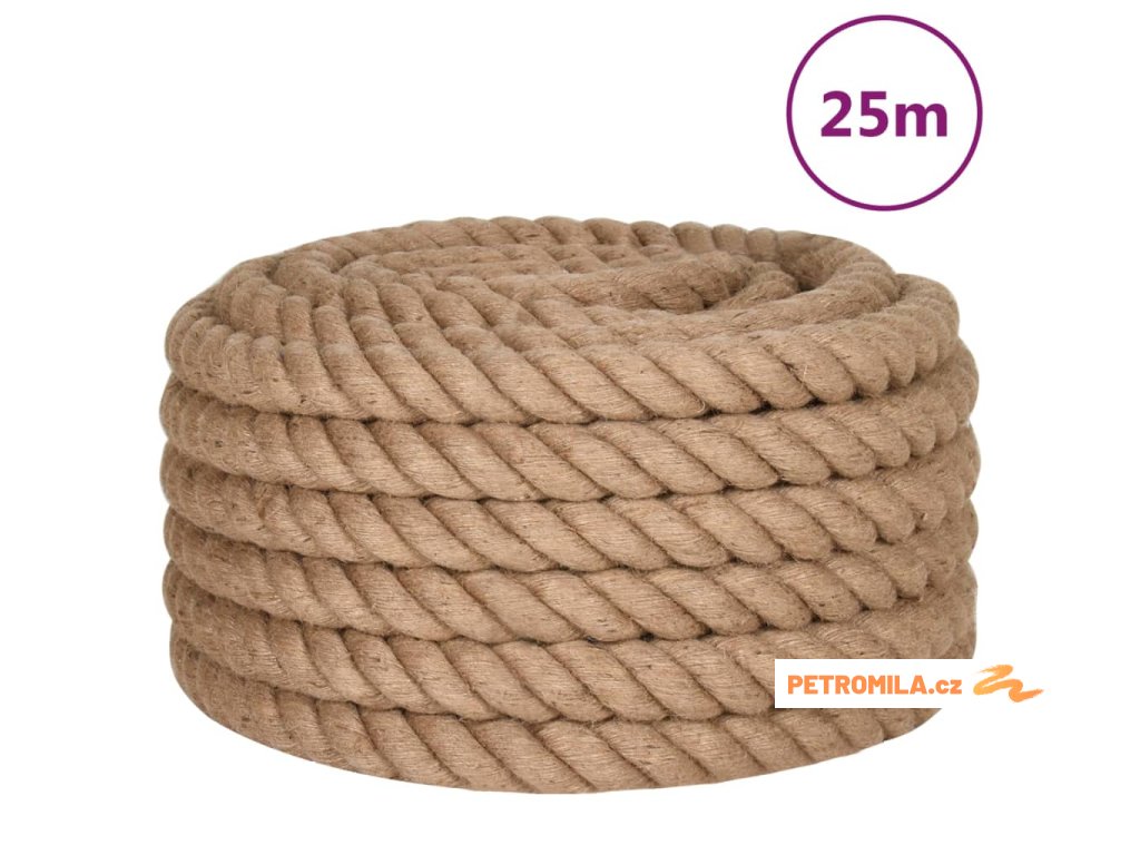 - Přírodní materiál: Toto jutové lano je pevně spletené ze 3 jemnějších pramenů 100% přírodní juty, je silné, pružné, odolné vůči povětrnostním vlivům a bezpečné.