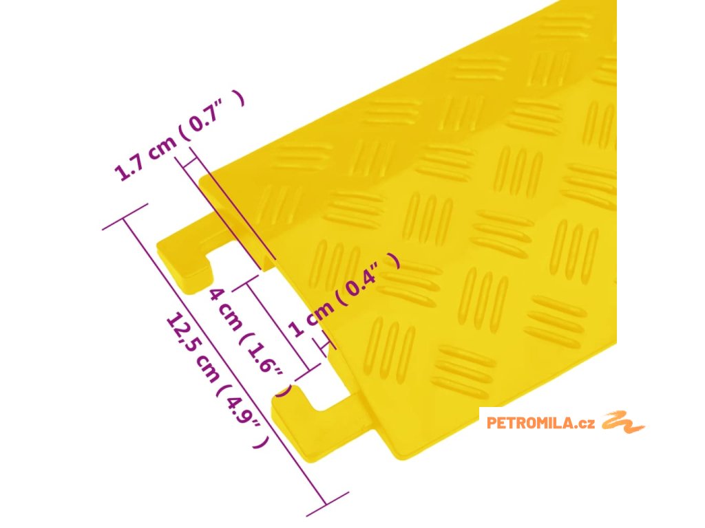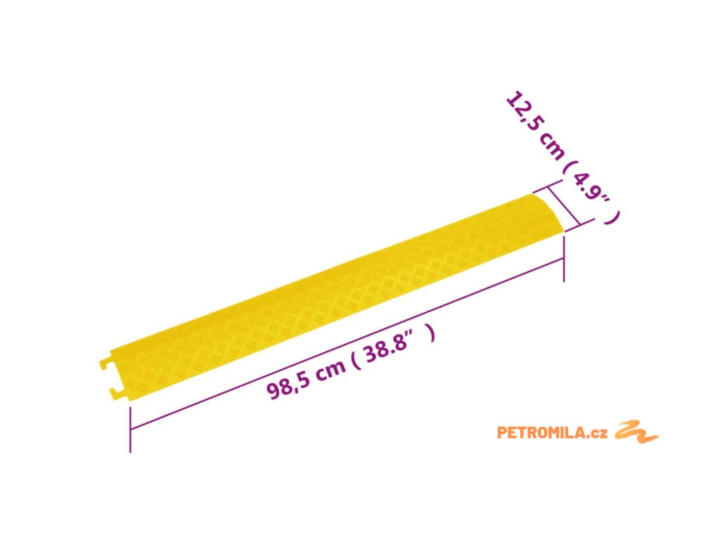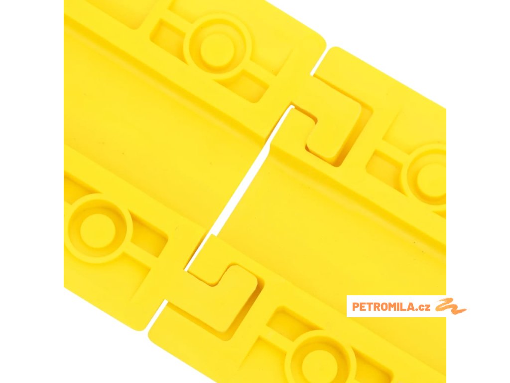 Přejezd je vyroben z gumy, která je lehká, pevná a odolná. Pro zajištění větší viditelnosti je rampa zářivě žlutá. Chrání vaše kabely a má maximální nosnost 2 tuny. Kabely můžete snadno vkládat a vytahovat odklopením horního krytu. Modulární design umožňuje spojit několik přejezdů dohromady, a přizpůsobit je tak delším kabelům.