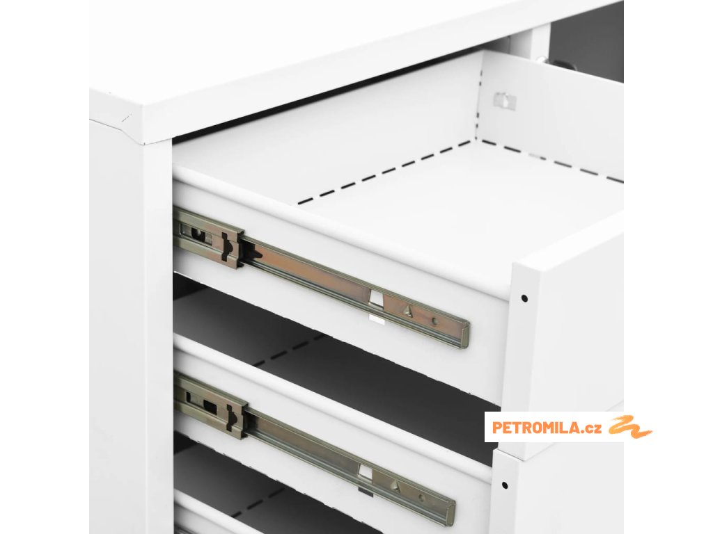 Tato kancelářská skříň je vyrobena z oceli, takže je odolná a snadno se čistí. Uvnitř najdete uzamykatelnou skříňku a nastavitelnou polici, takže můžete snadno a úhledně třídit soubory do různých kategorií a mít je v bezpečí. Zásuvky s 3dílnými pojezdy s kuličkovými ložisky zajišťují hladké otevírání a zavírání i při zvýšené zátěži. Se svým ikonickým designem se tato skříň bude hodit do každé kanceláře.