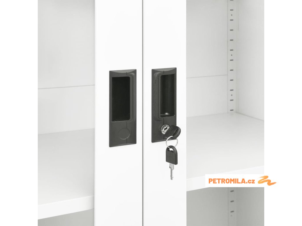 Skříň má 3 nastavitelné police a 2 zámky, takže si v ní můžete svoje dokumenty přehledně uspořádat do různých kategorií a přitom se nemusíte bát o jejich bezpečí. Její ikonický design krásně zapadne do každé kanceláře. Přes originální dveře z tvrzeného skla navíc pohodlně uvidíte dovnitř, a budete tak moci vytáhnout přesně ten spis, který potřebujete.