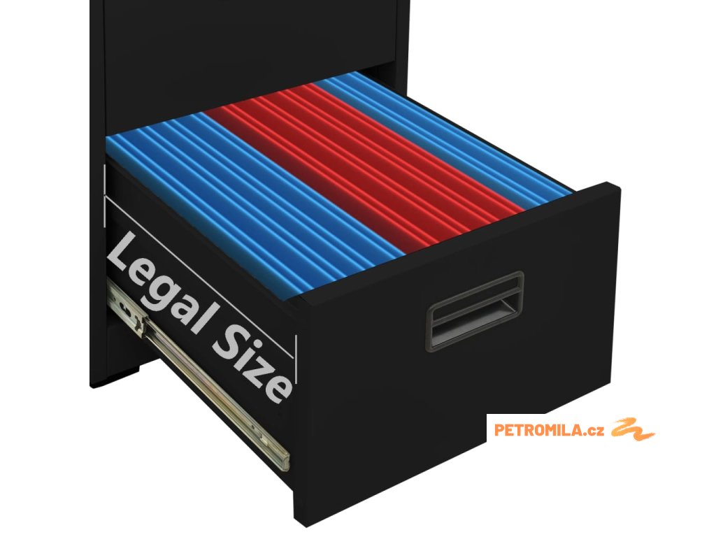 Tato kartotéka je vyrobena z oceli, je tedy odolná a snadno se čistí. Disponuje 2 zásuvkami a 1 zámkem, takže můžete přehledně třídit soubory do různých kategorií a mít je bezpečně uložené. Každá zásuvka je vybavena 1 odnímatelnou závěsnou tyčí, kterou lze libovolně kombinovat pro uložení souborů formátu legal a závěsných desek velikosti A4. Zásuvky s třídílnými pojezdy s kuličkovými ložisky zajišťují plynulé otevírání a zavírání, i při zvýšené zátěži se zásuvky dají zcela vysunout.