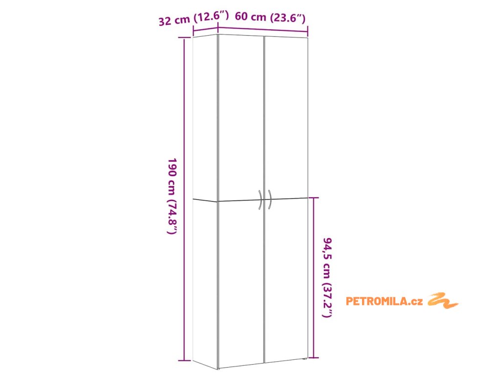 - Celkové rozměry: 60 x 32 x 190 (D x Š x V)