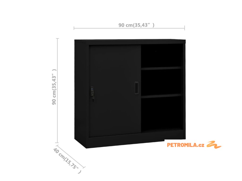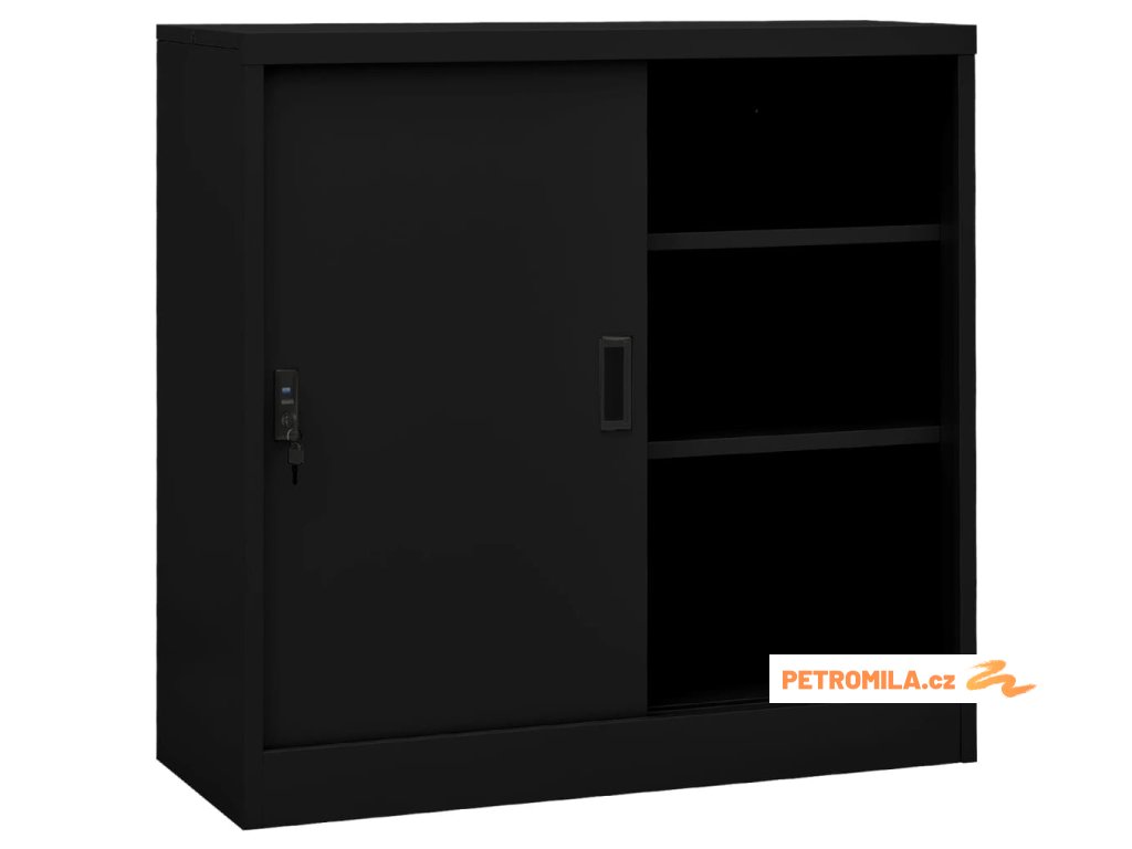 Kancelářská skříň s posuvnými dveřmi černá 90 x 40 x 90 cm ocel