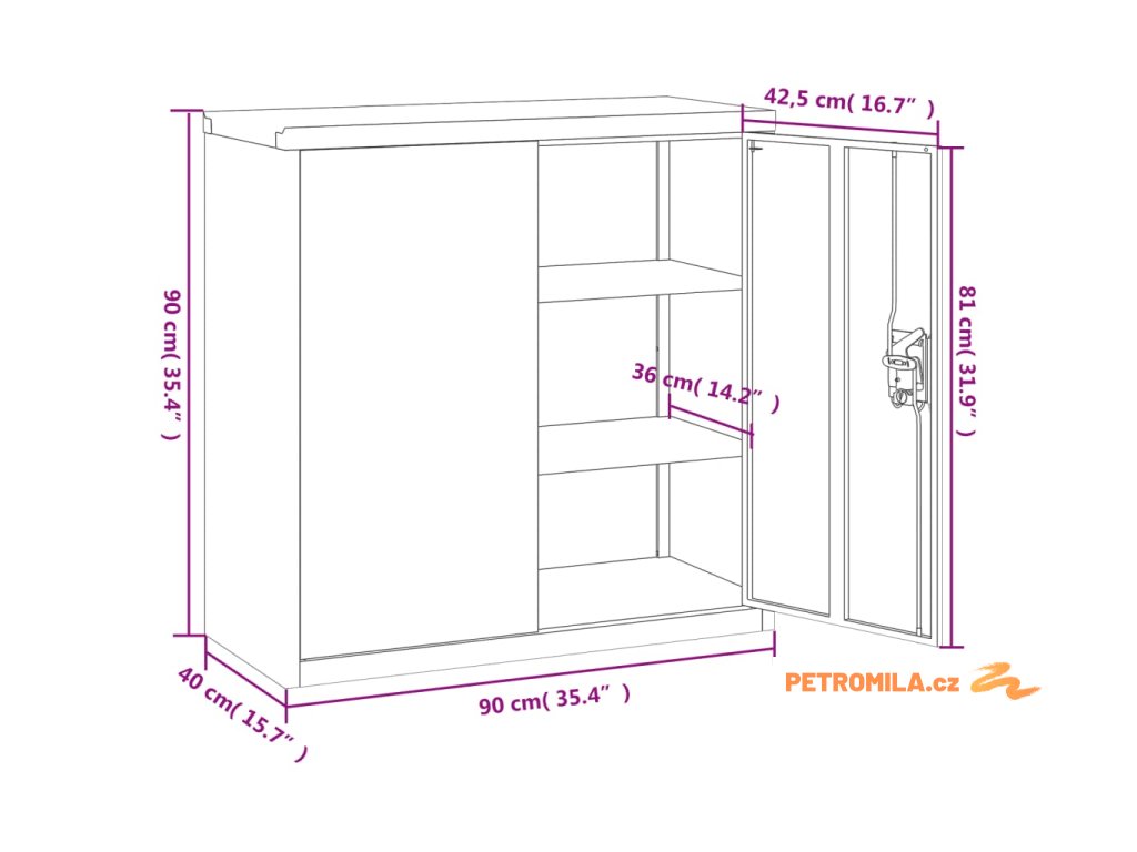 Kancelářská skříň se 2 dvířky šedá 90 cm ocelová