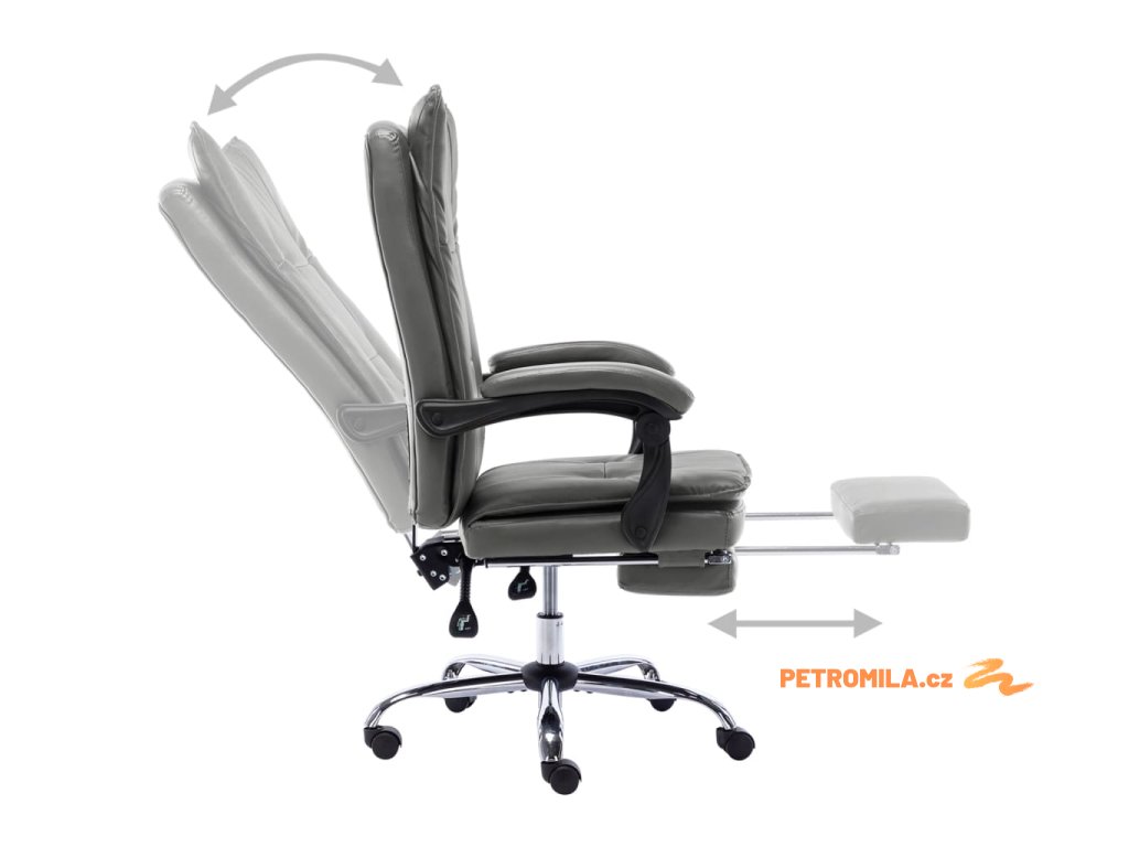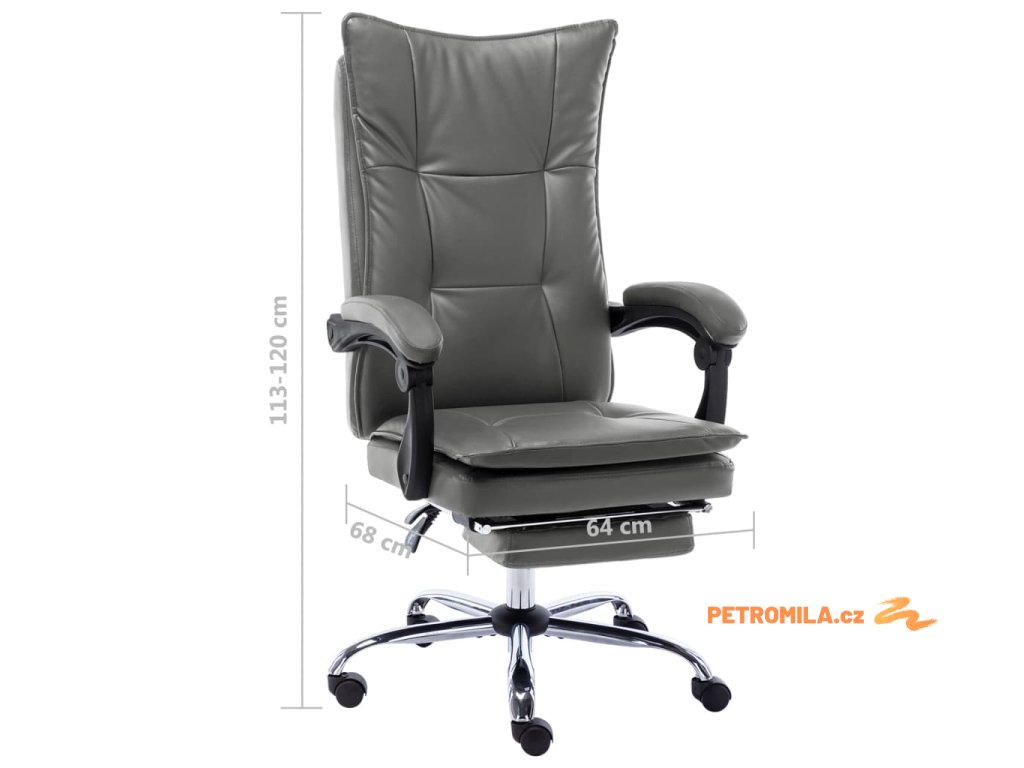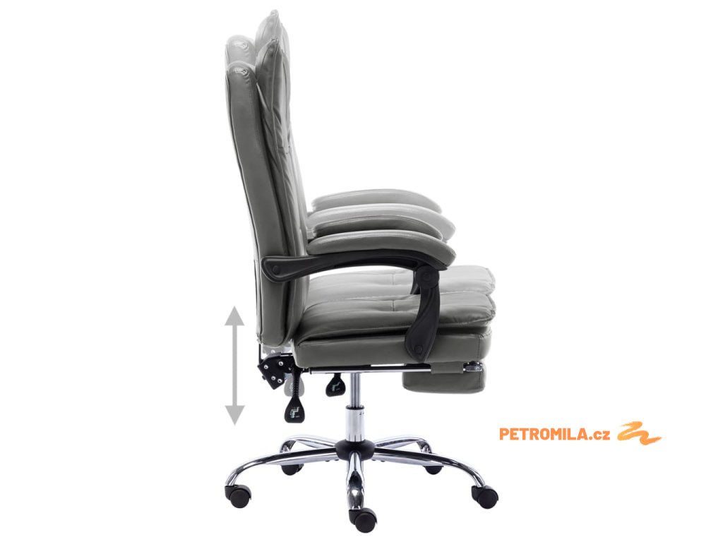 Židle má vysoké opěradlo, zaoblené područky, podnožku a hustě polstrovaný sedák, aby se vám na ní dobře sedělo i během dlouhých pracovních dnů. Její výšku lze nastavit, takže ji bez problémů přizpůsobíte výšce stolu, a dosáhnete tak maximálního pohodlí i zdravé pozice páteře. Polohovací křeslo je vybavené nylonovými pojezdovými kolečky pro snadný pohyb. Navíc se dá sklopit do úhlu 95° až 150°, což vám umožní najít si tu nejpříjemnější polohu k odpočinku.