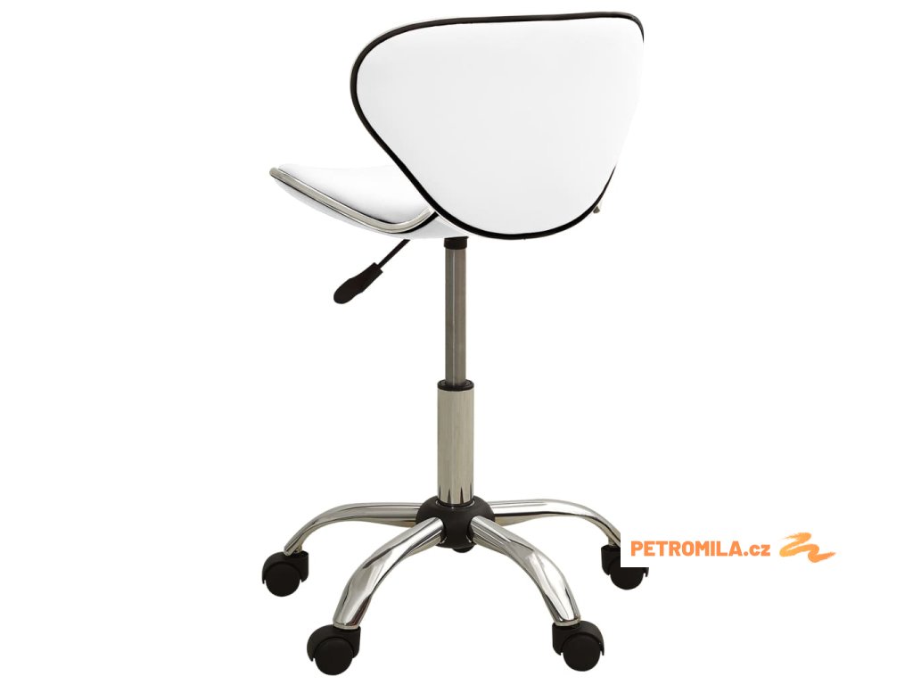 Židle je čalouněná umělou kůží, která se snadno čistí, a nabízí maximální pohodlí při sezení. Navíc se otáčí o 360 stupňů a její výšku lze nastavit, takže se přizpůsobí vašim momentálním potřebám. Pět pojezdových koleček zajišťuje výtečnou mobilitu.