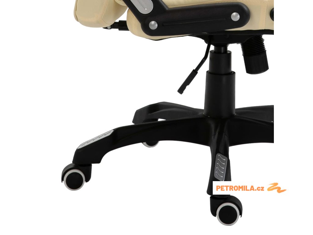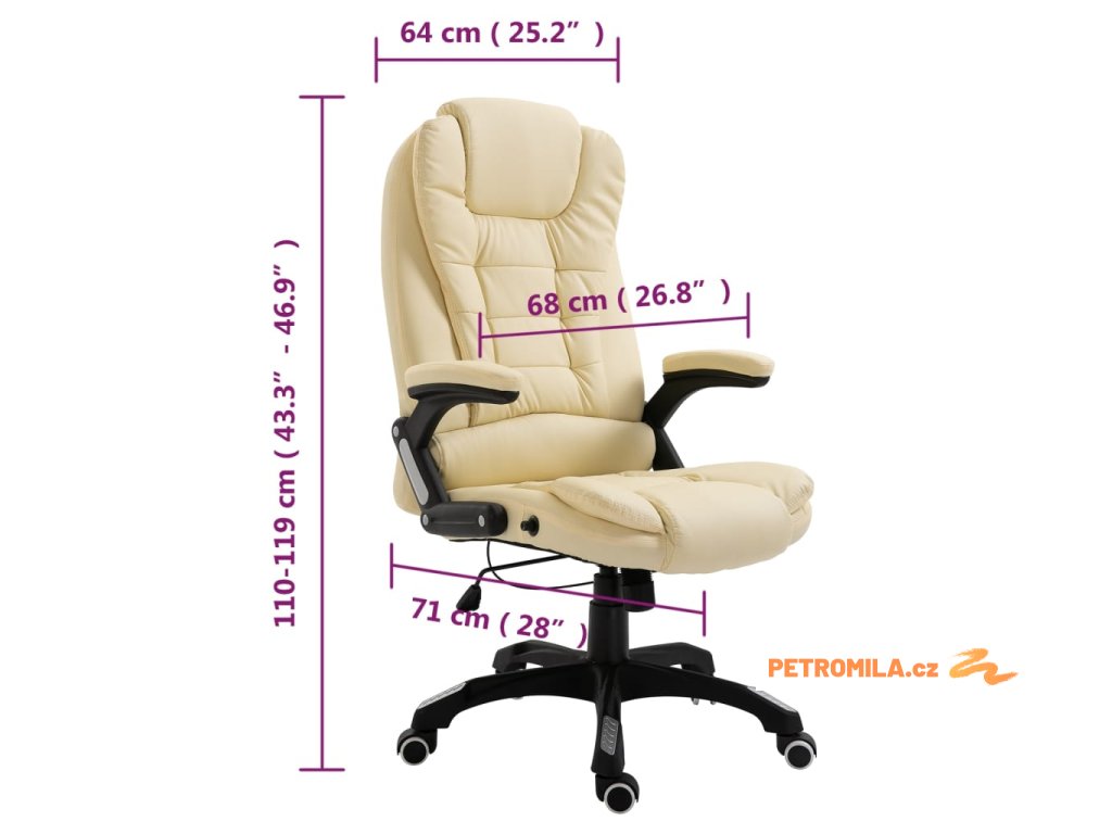 Design s vysokým opěradlem a ergonomicky polstrovaným opěradlem, područkami a sedákem vám umožní pohodlně pracovat i několik hodin. Má nastavitelný design, takže si židli můžete přizpůsobit výšce vašeho stolu, aby se vám pohodlněji sedělo a vaše páteř byla ve zdravé pozici. Design rovněž umožňuje otáčet židli o 360° stupňů. Židle je posazená na 5 nylonových kolečkách, a dá se tudíž bez námahy či hluku přesouvat z místa na místo.