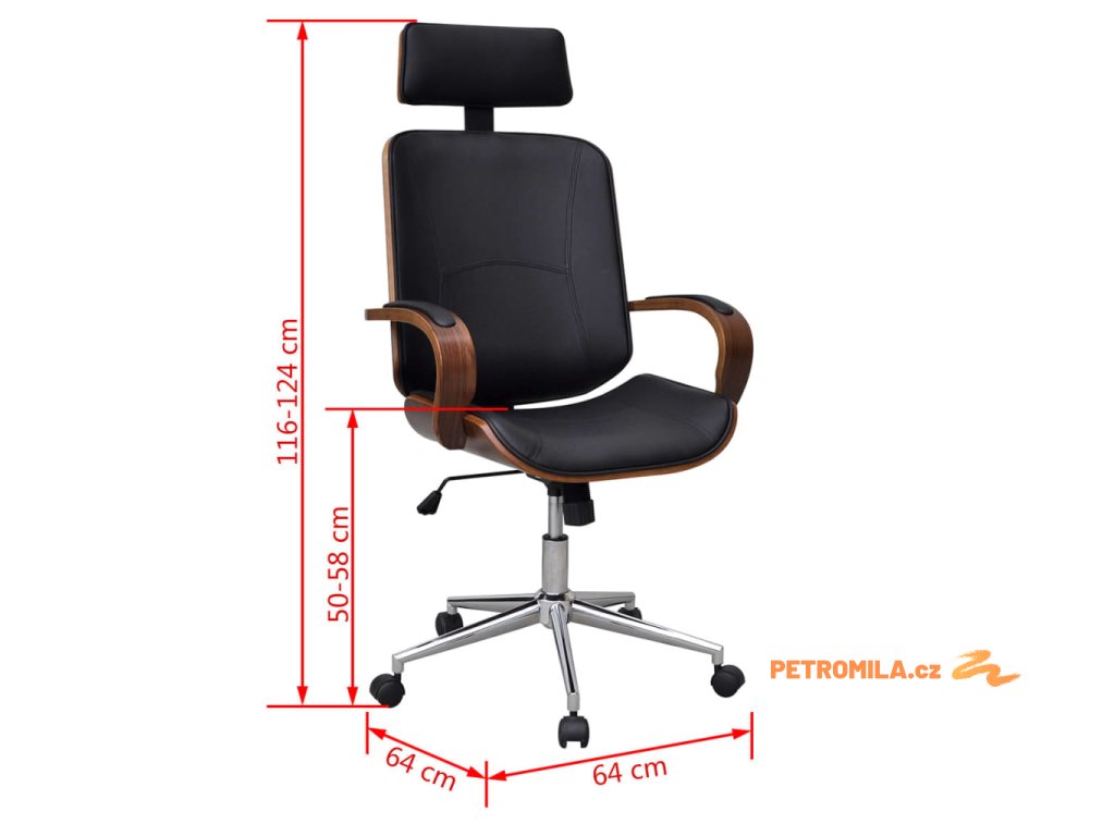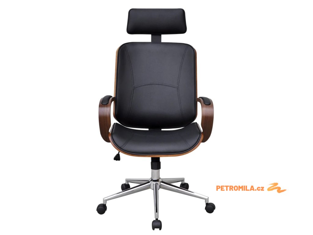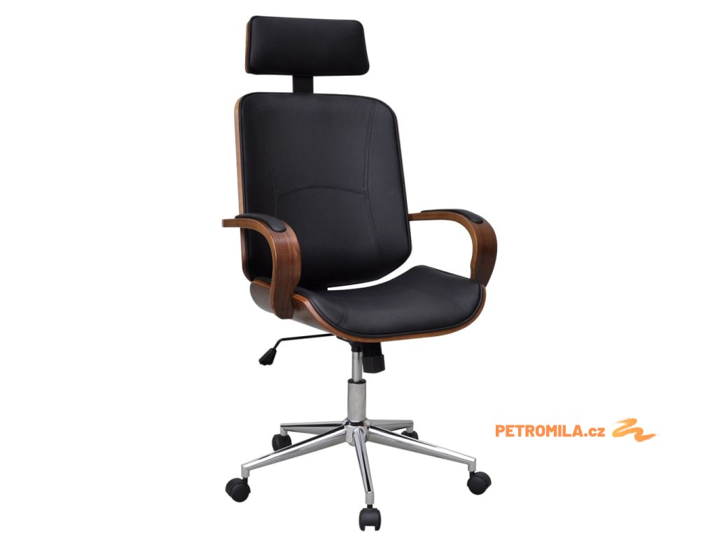 Kancelářská židle s opěrkou hlavy ohýbané dřevo a umělá kůže