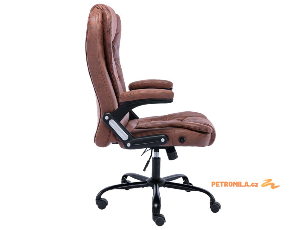 Židle má vysoké opěradlo, zaoblené područky a hustě polstrovaný sedák, aby se vám na ní dobře sedělo i během dlouhých pracovních dnů. Její výšku lze nastavit, takže ji bez problémů přizpůsobíte výšce psacího stolu, a dosáhnete tak maximálního pohodlí i zdravé pozice páteře. Polohovací křeslo je vybavené nylonovými pojezdovými kolečky pro snadný pohyb.