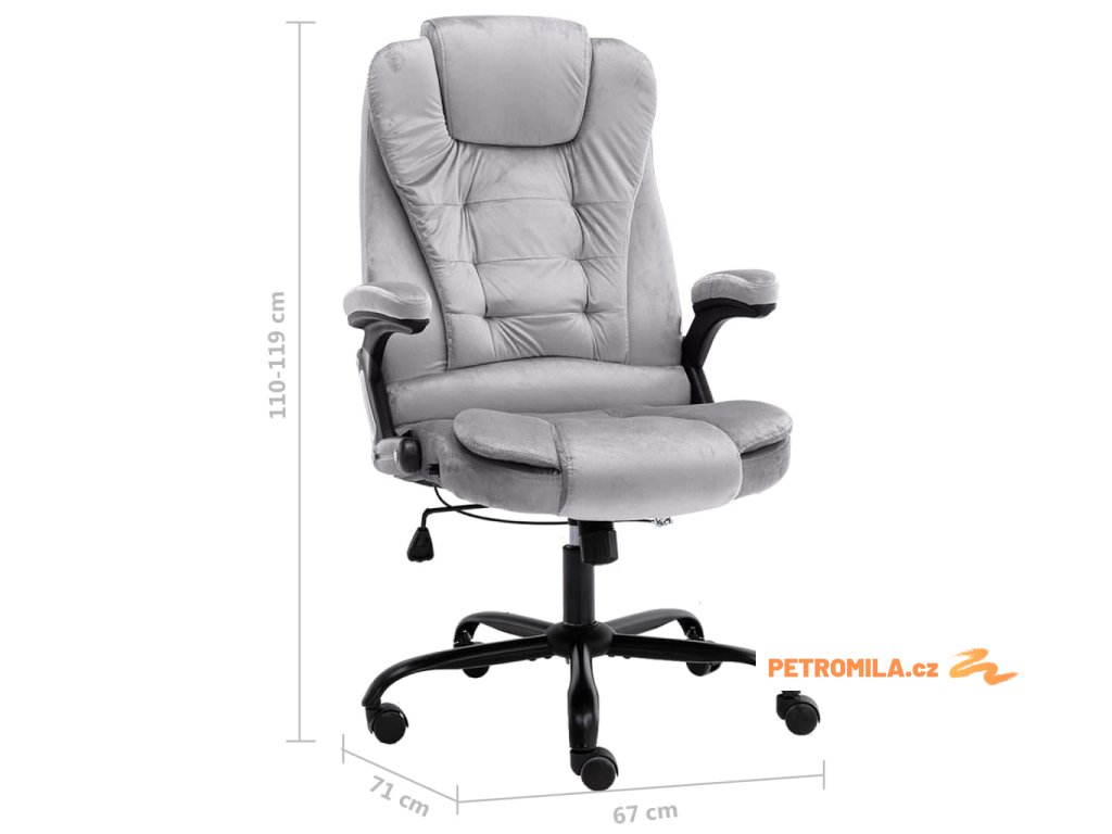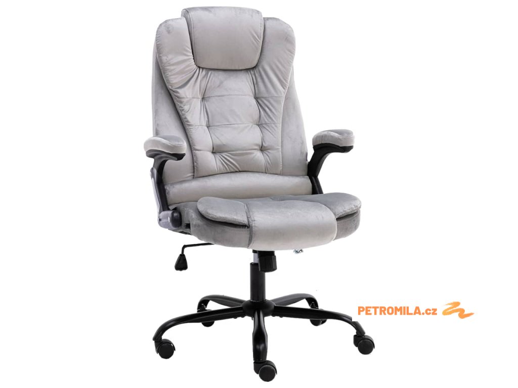 Židle má vysoké opěradlo, zaoblené područky a hustě polstrovaný sedák, aby se vám na ní dobře sedělo i během dlouhých pracovních dnů. Její výšku lze nastavit, takže ji bez problémů přizpůsobíte výšce psacího stolu, a dosáhnete tak maximálního pohodlí i zdravé pozice páteře. Polohovací křeslo je vybavené nylonovými pojezdovými kolečky pro snadný pohyb.