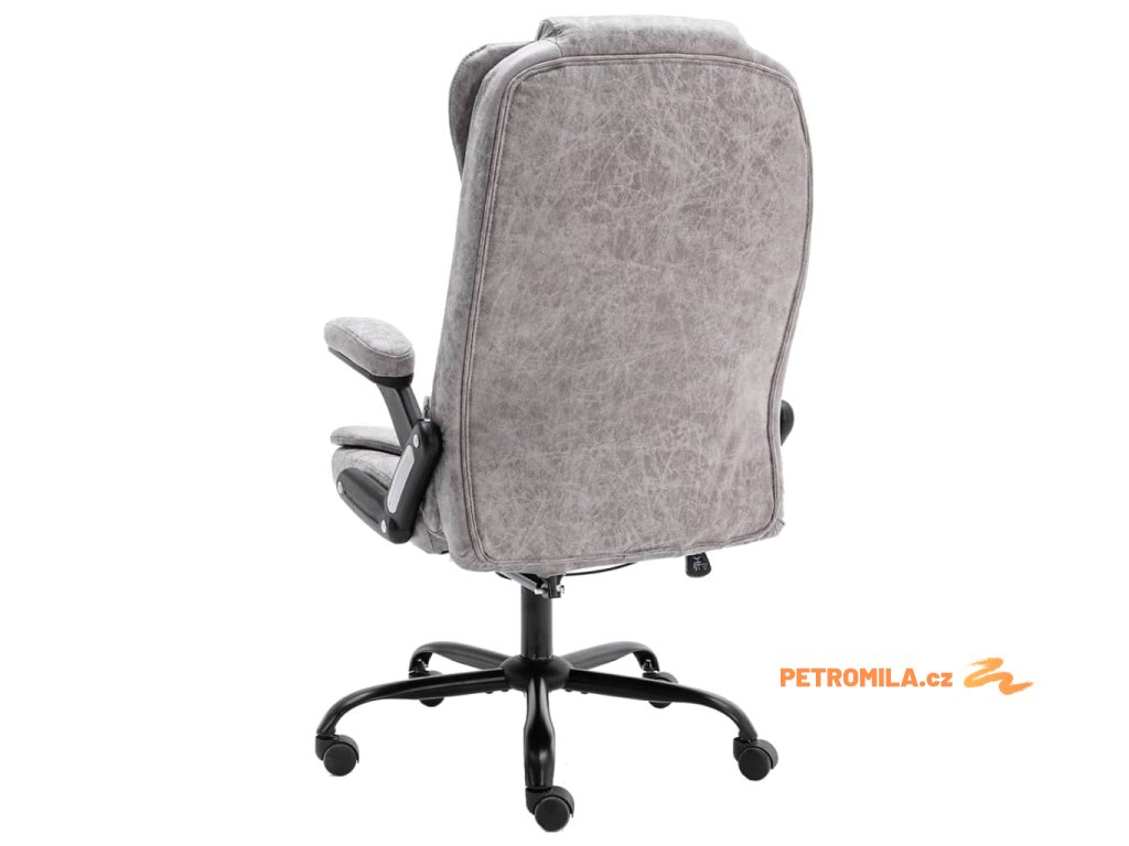 Židle má vysoké opěradlo, zaoblené područky a hustě polstrovaný sedák, aby se vám na ní dobře sedělo i během dlouhých pracovních dnů. Její výšku lze nastavit, takže ji bez problémů přizpůsobíte výšce psacího stolu, a dosáhnete tak maximálního pohodlí i zdravé pozice páteře. Polohovací křeslo je vybavené nylonovými pojezdovými kolečky pro snadný pohyb.