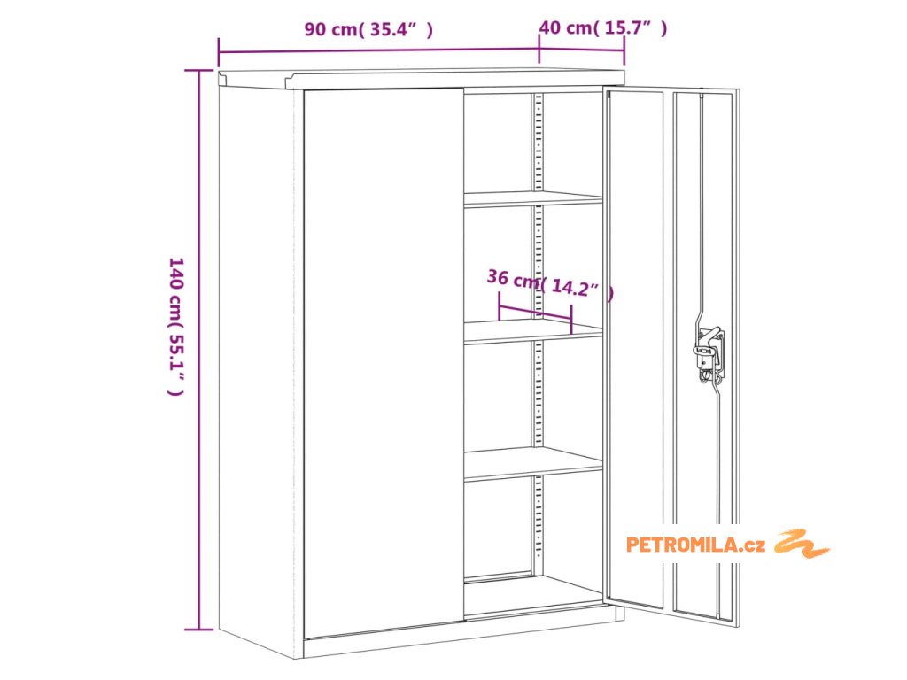 - Nastavitelné police: Úložná skříň je vybavena 3 nastavitelnými policemi, které umožňují přehledné třídění souborů do různých kategorií.