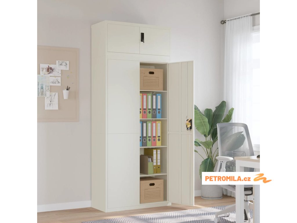 - Nastavitelné police: Skříň je vybavena 4 nastavitelnými policemi, které umožňují přehledné třídění souborů do různých kategorií.