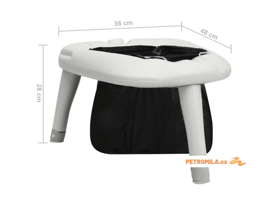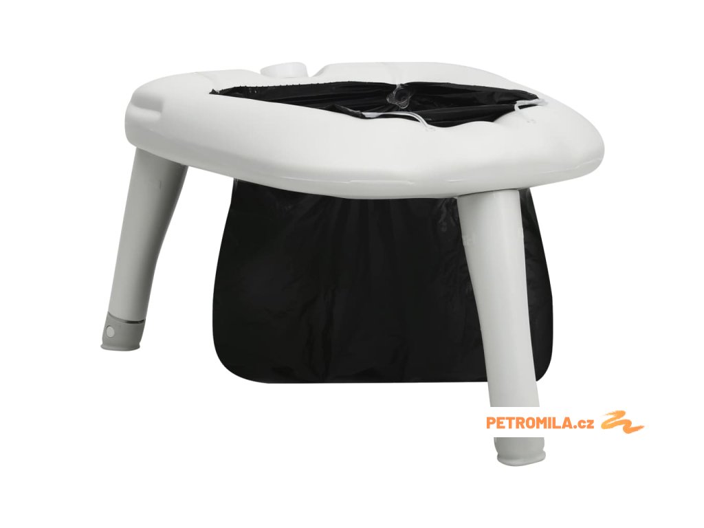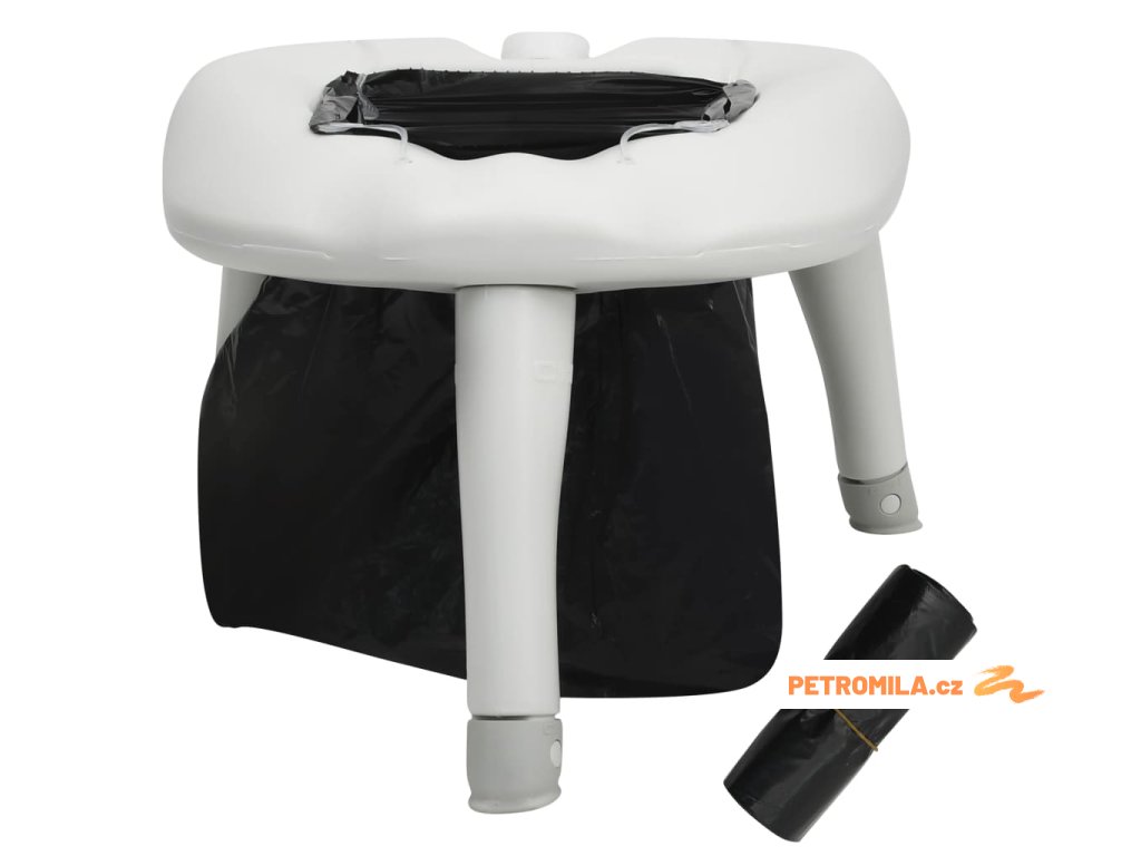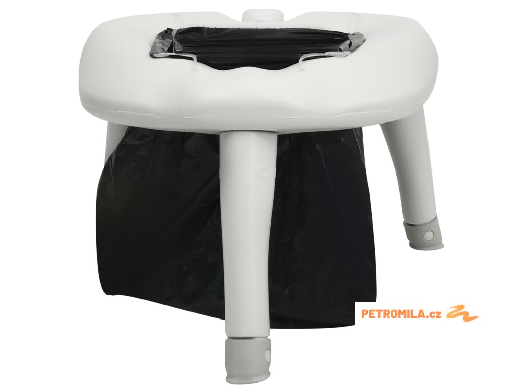 Tato kempingová toaleta je vyrobená z pevného a odolného plastu s nosností až 200 kg a disponuje přiměřeně širokým sedadlem. Skládací toaleta má formu trojnožky, je tudíž stabilní, i když si ji rozložíte v lese a na loukách. Sedadlo lze naplnit vodou, toaleta pak bude držet pevně na svém místě. Součástí dodávky jsou jednorázové pytle, které lze spolehlivě upevnit na sedadlo pro bezproblémové používání.