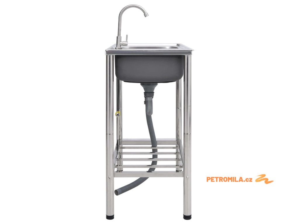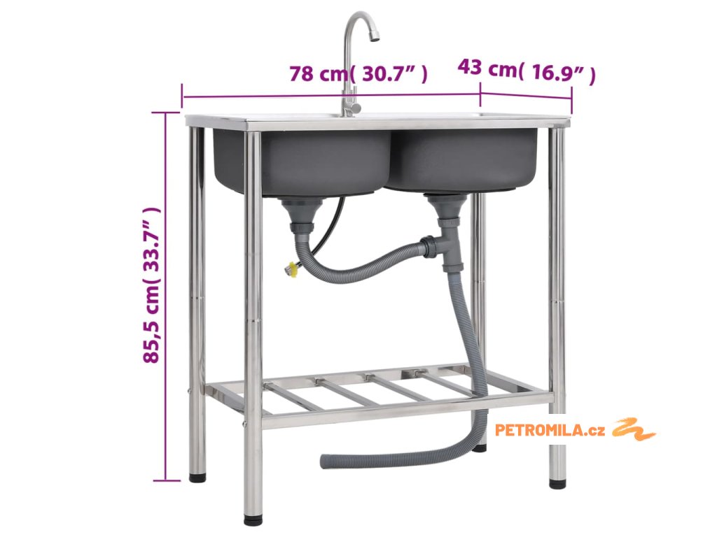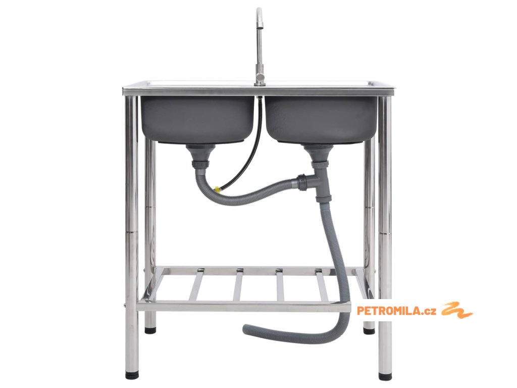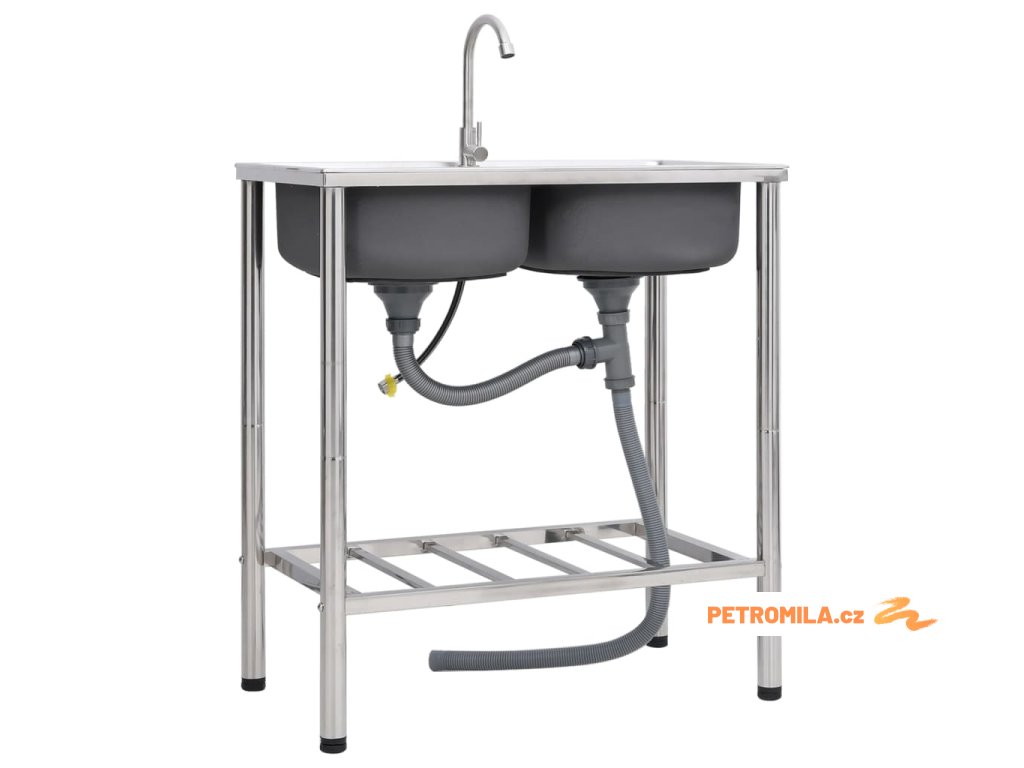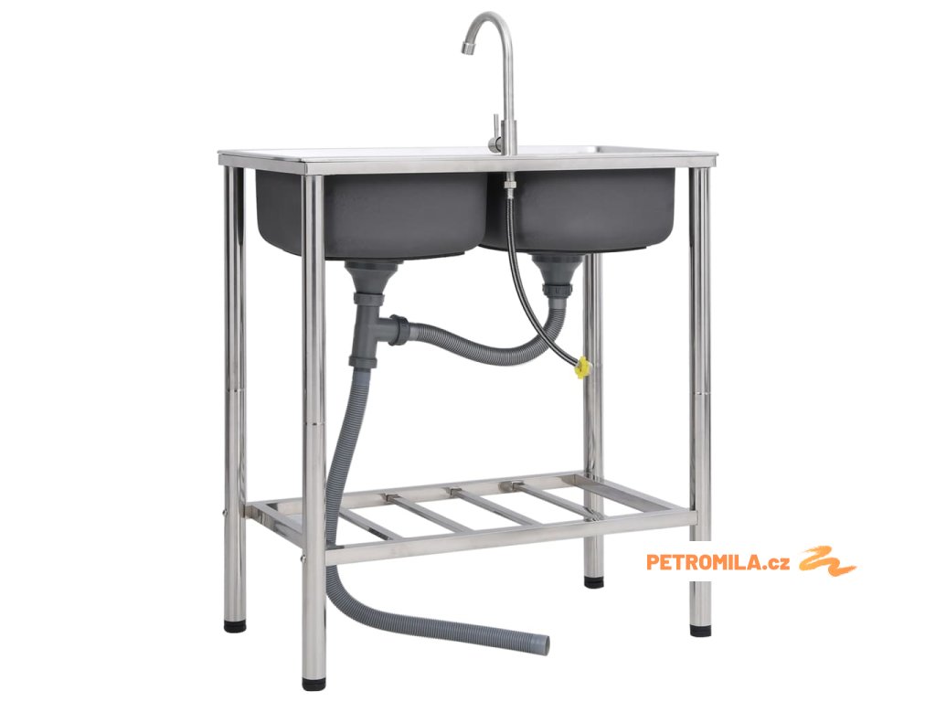 Kempingový dřez dvojitý s baterií nerezová ocel