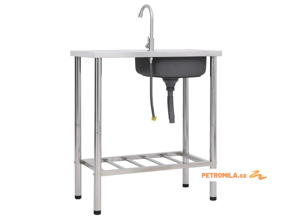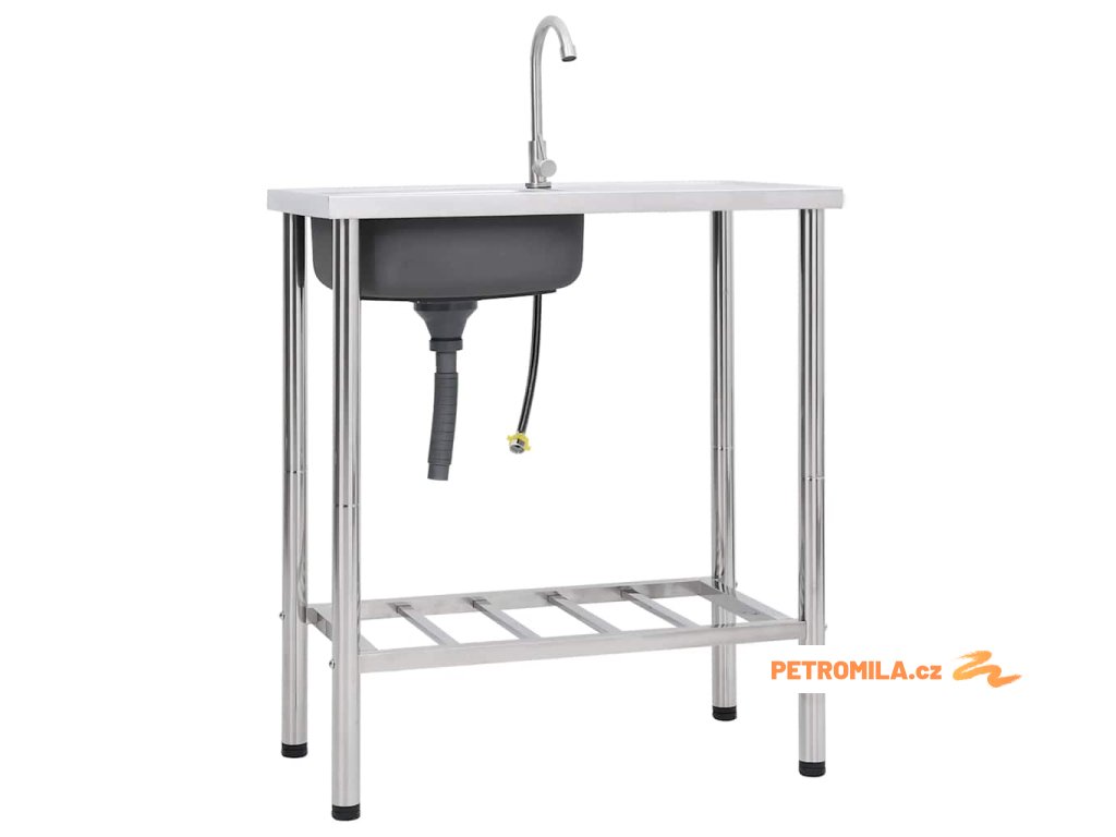 Kempingový dřez jednoduchý s baterií nerezová ocel