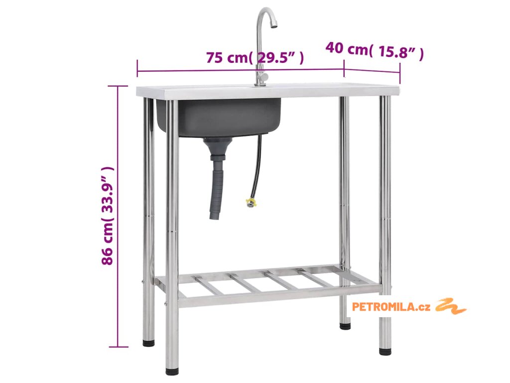 - Rozměry dřezu: 75 x 40 x 15 cm (D x Š x V)
