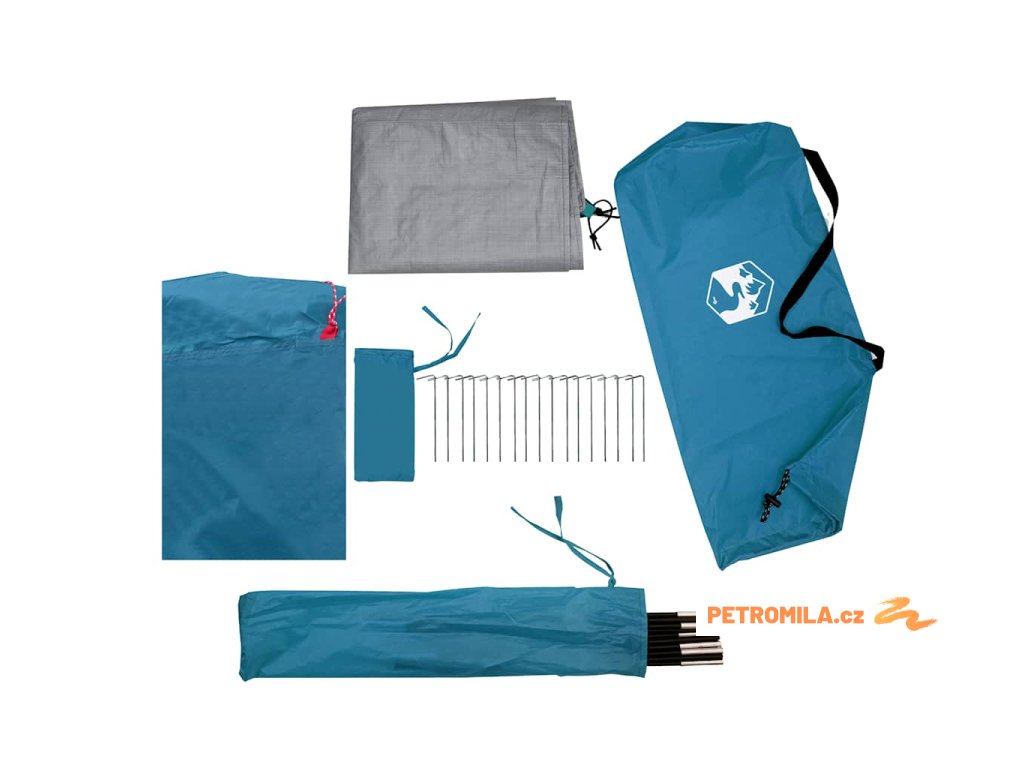 - Snadné stavění i balení: Díky vysoce flexibilním a lehkým tyčím ze skelných vláken a praktickému systému spojování pomocí kolíků a kroužků je stavění i balení stanu hračkou.