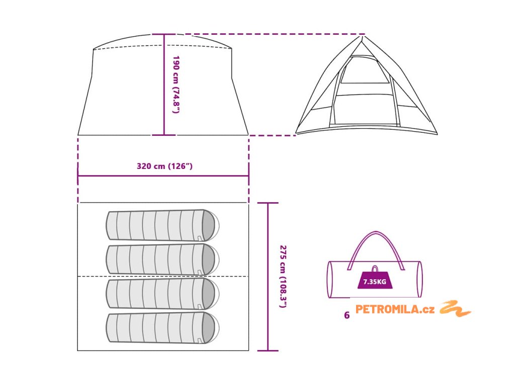 - Celkové rozměry: 320 x 275 x 190 cm (D x Š x V)