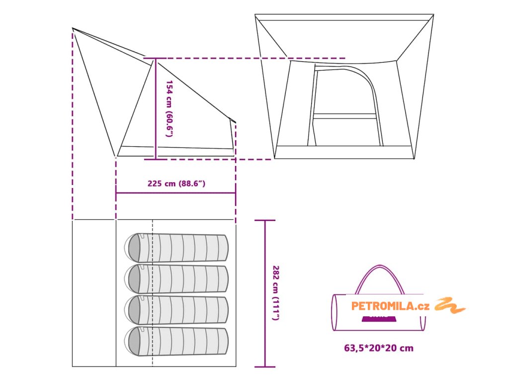 - Celkové rozměry: 282 x 225 x 154 cm (D x Š x V)