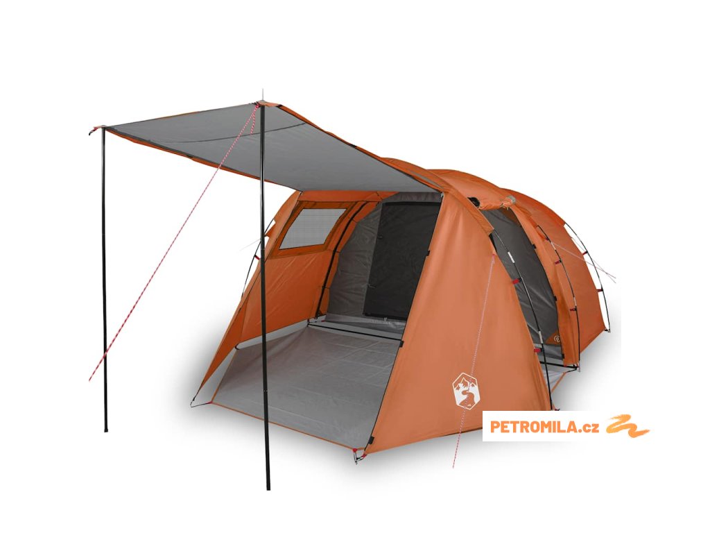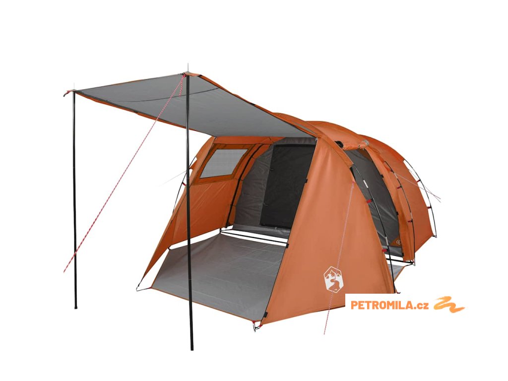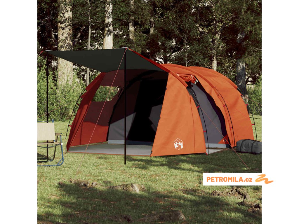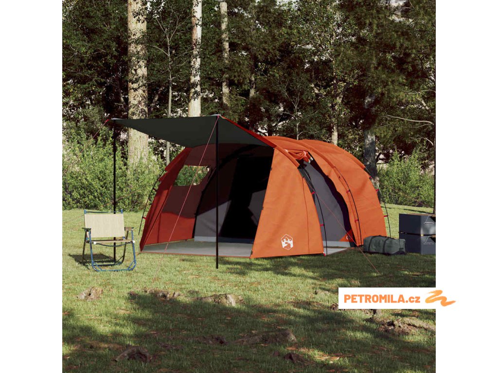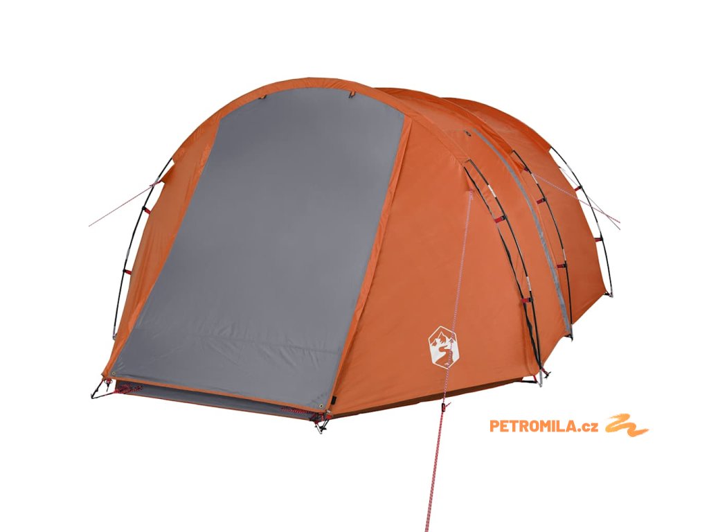 Kempingový stan tunel pro 4 osoby šedý a oranžový nepromokavý