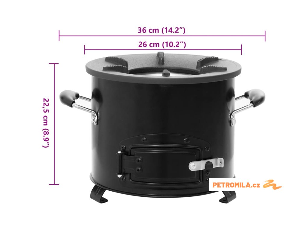 Kempingový vařič na dřevo černý 36 x 26 x 22,5 cm kov