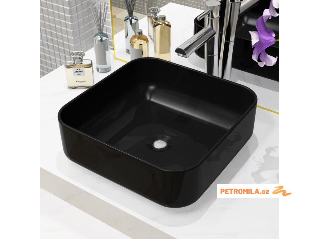 Keramické umyvadlo čtvercové černé 38 x 38 x 13,5 cm