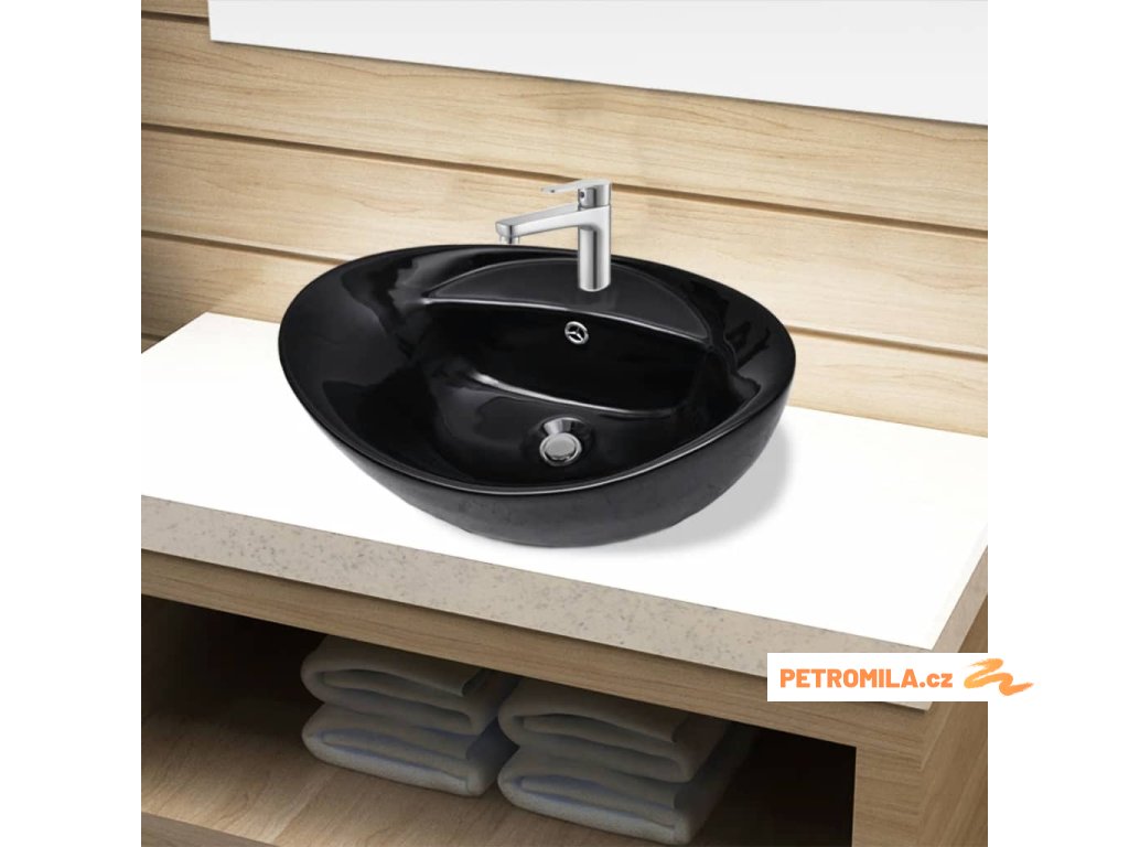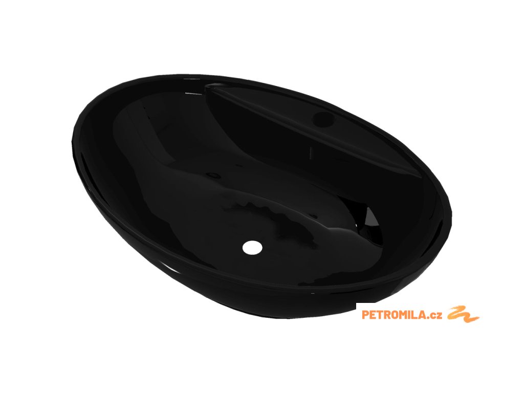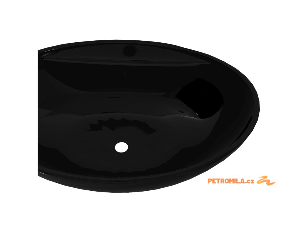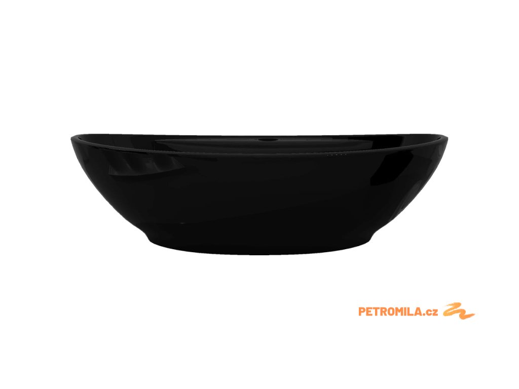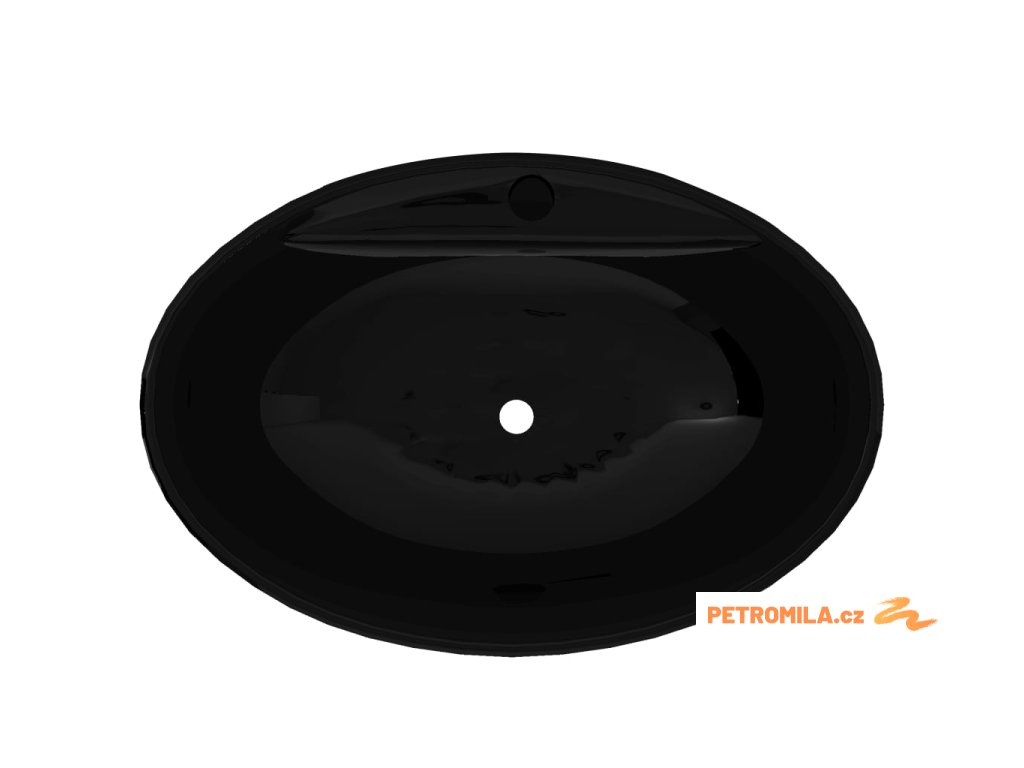 Keramické umyvadlo s otvorem na baterii a přepadem, černé oválné