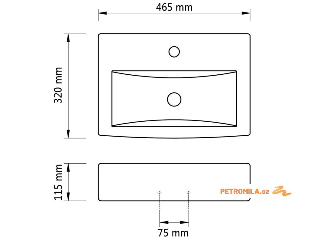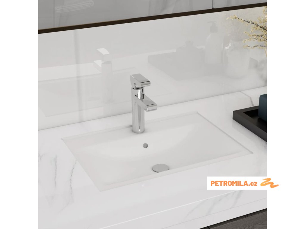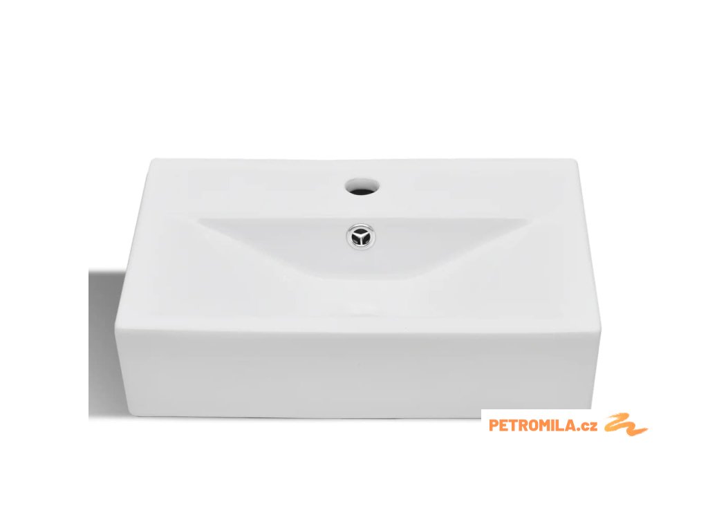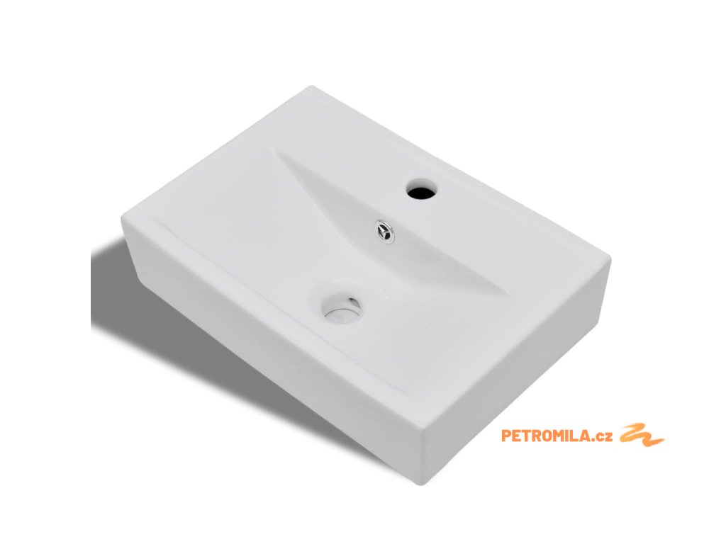 Keramické umyvadlo s otvorem na baterii a přepadem bílé obdélníkové