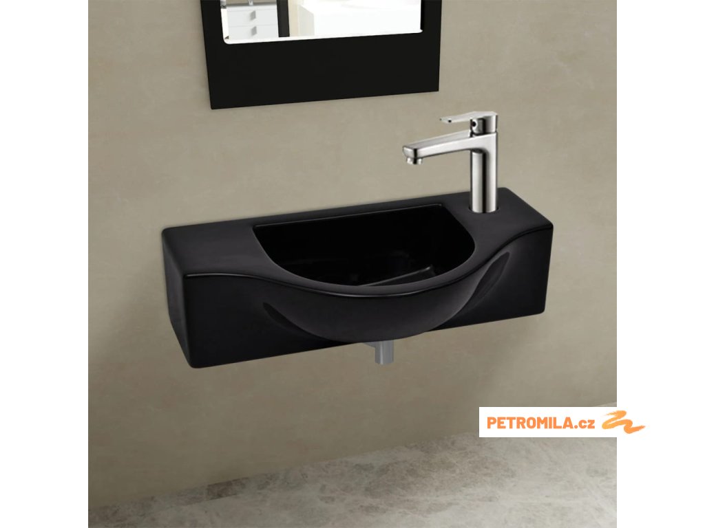 Keramické umyvadlo s otvorem na baterii černé