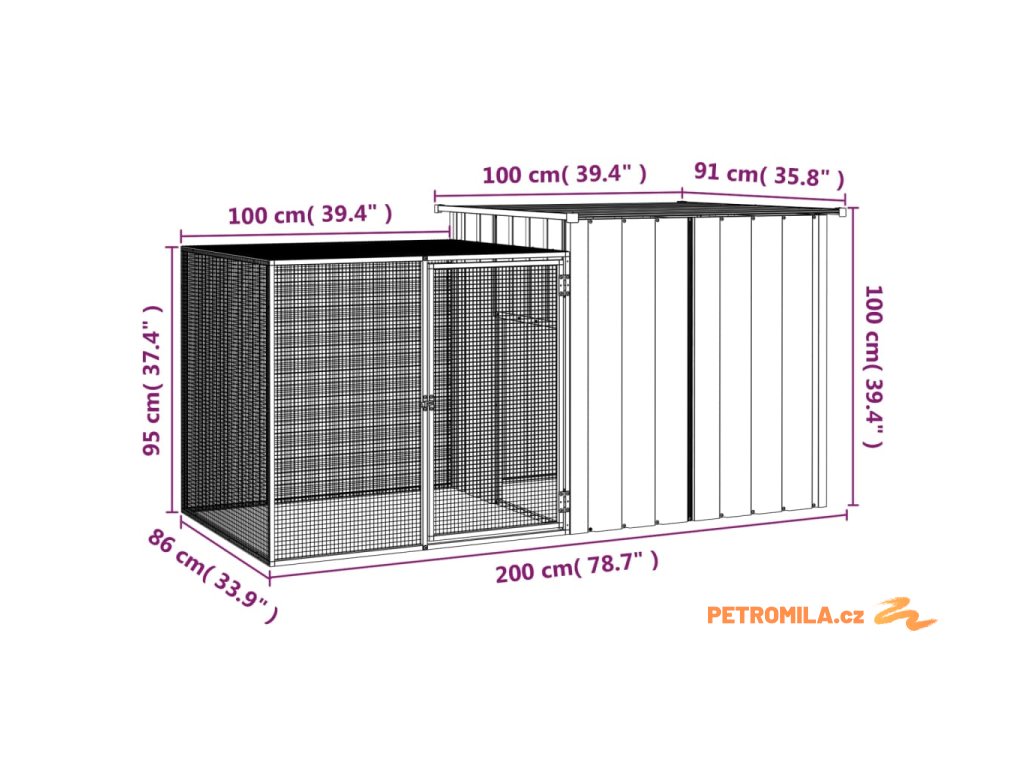 Klec pro králíky šedá 200 x 91 x 100 cm pozinkovaná ocel