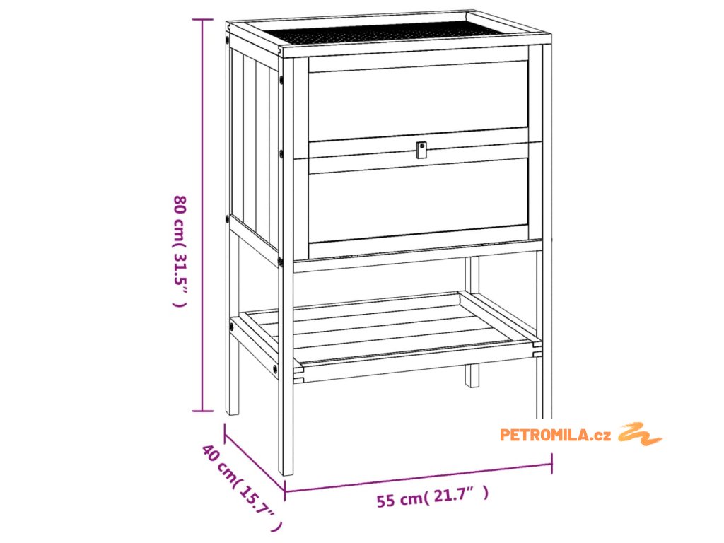 - Rozměry klece: 55 x 40 x 45,5 cm (D x Š x V)