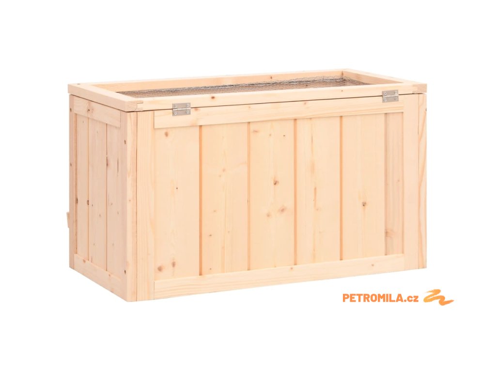 - Horní část z drátěného pletiva: Otevíratelná stříška je opatřena drátěným pletivem, čímž se zajistí dobré větrání a snadný přístup.