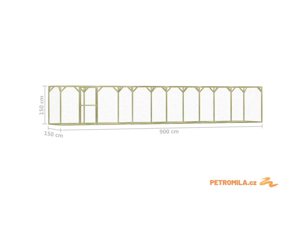 Klec pro kuřata 1,5 x 9 x 1,5 m impregnovaná borovice