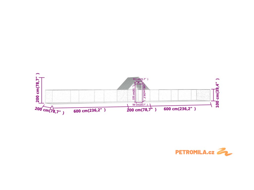 - Celkové rozměry: 14 x 2 x 2 m (Š x H x V)