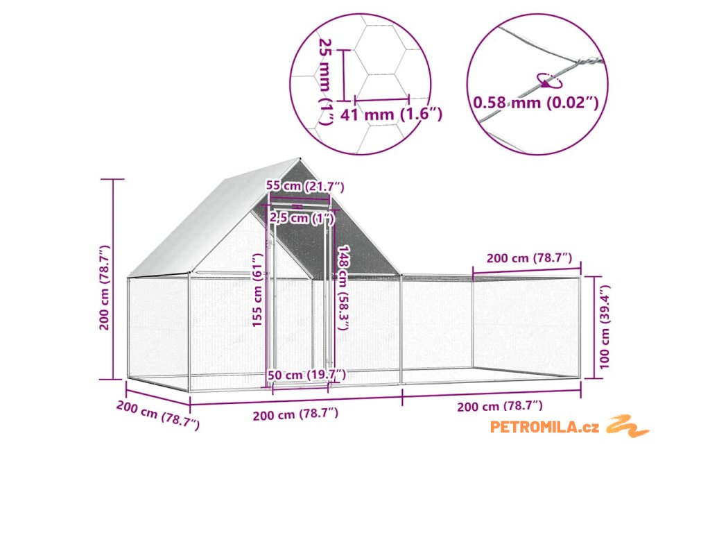 Klec pro kuřata 4 x 2 x 2 m pozinkovaná ocel