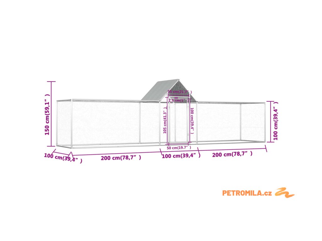 Klec pro kuřata 5 x 1 x 1,5 m pozinkovaná ocel
