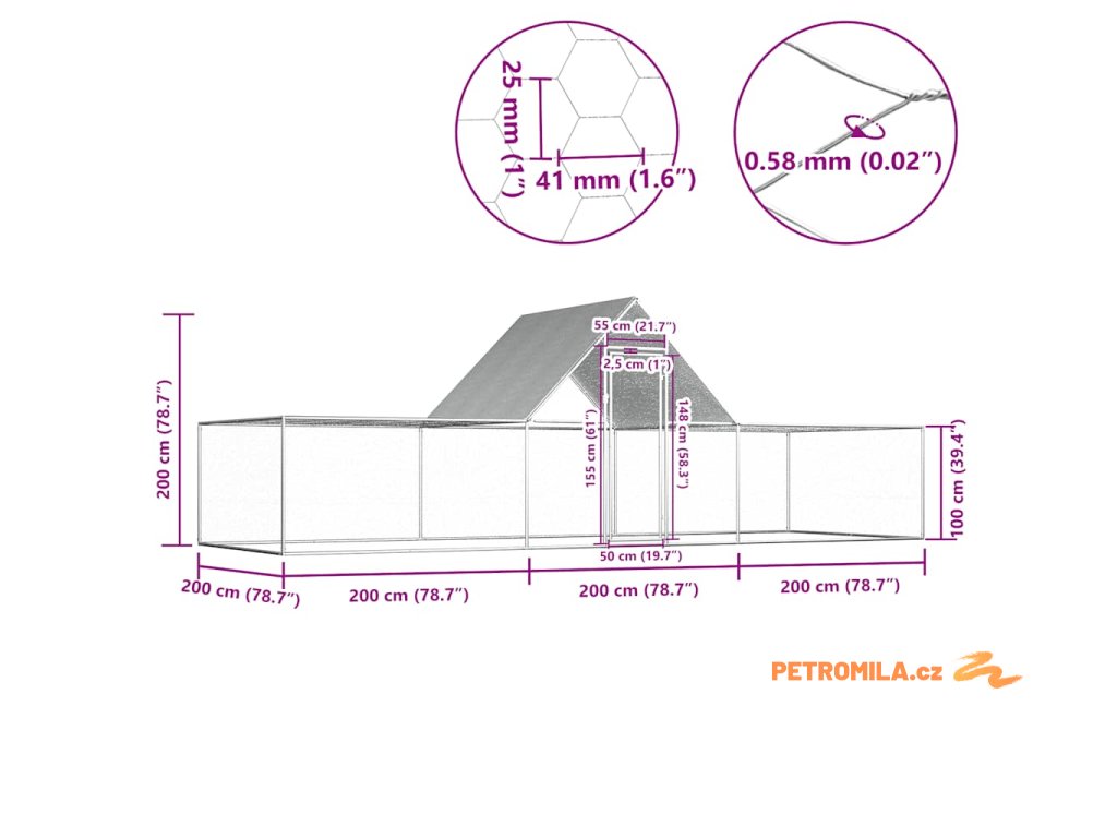 Klec pro kuřata 6 x 2 x 2 m pozinkovaná ocel