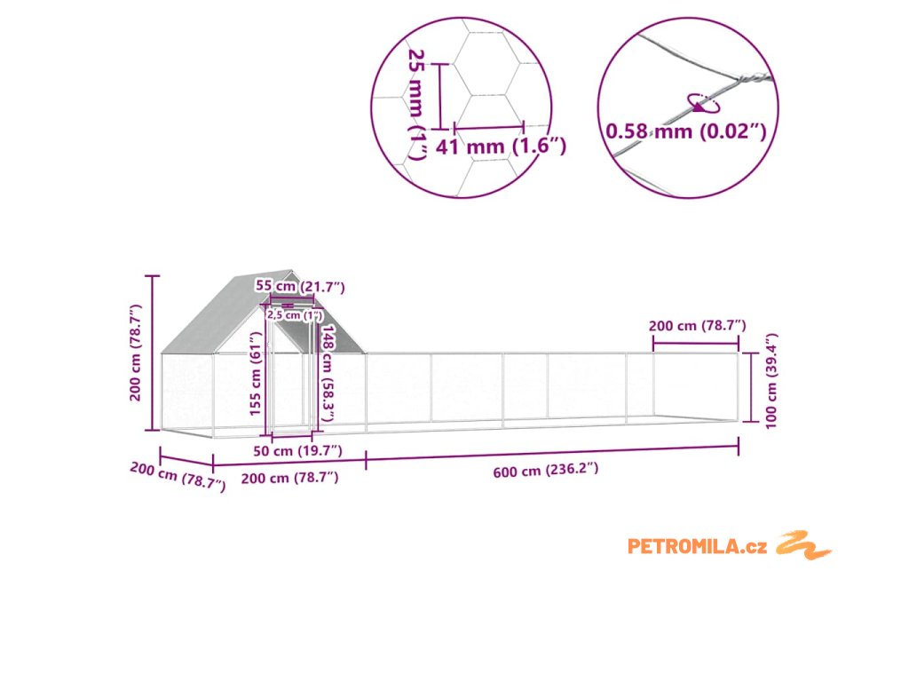Klec pro kuřata 8 x 2 x 2 m pozinkovaná ocel
