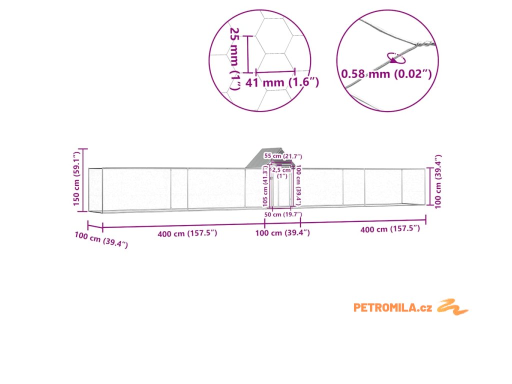 Klec pro kuřata 9 x 1 x 1,5 m pozinkovaná ocel