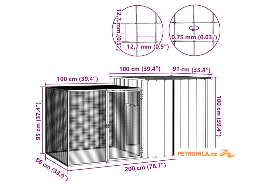 Klec pro kuřata antracitová 200 x 91 x 100 cm pozinkovaná ocel