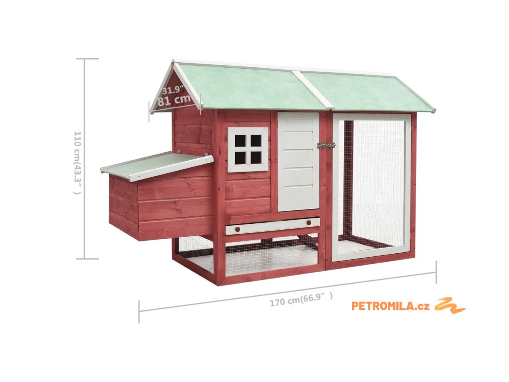 Klec pro kuřata červená 170x81x110 cm masivní borovice a jedle