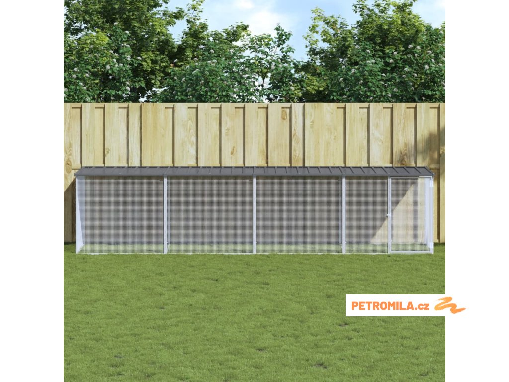 Klec pro kuřata se střechou antracitová 403 x 98 x 90 cm ocel