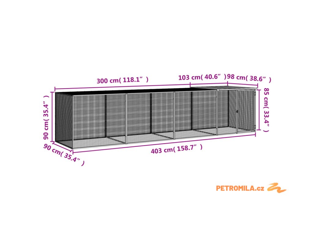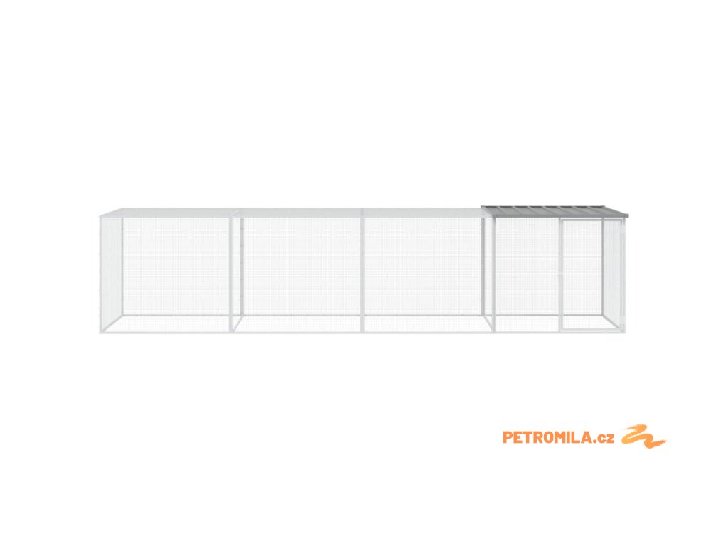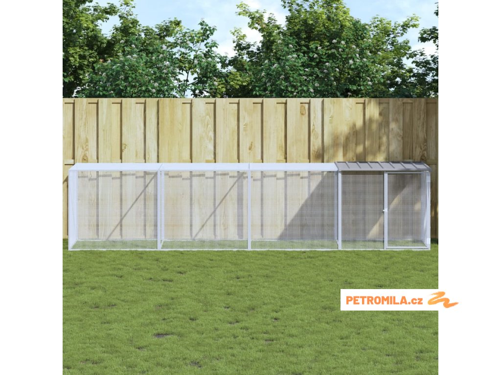 Klec pro kuřata se střechou světle šedá 403 x 98 x 90 cm ocel