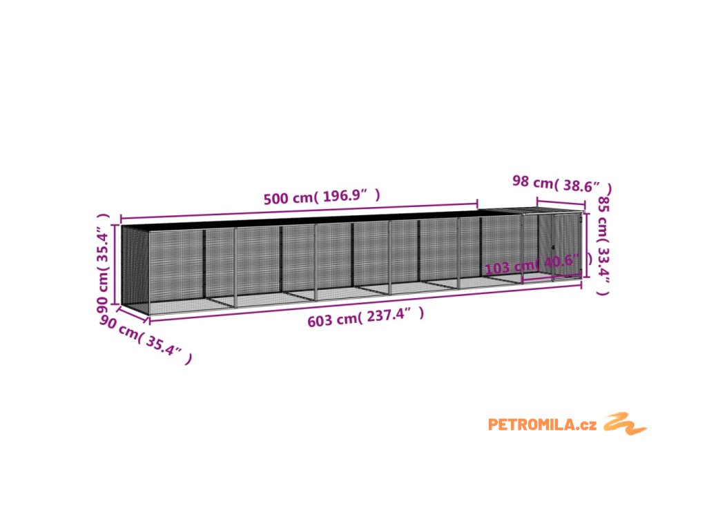 Klec pro kuřata se střechou světle šedá 603 x 98 x 90 cm ocel