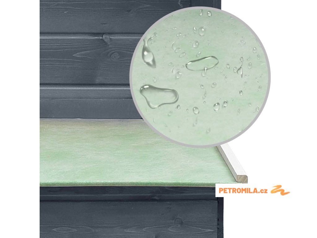- Střecha potažená voděodolnou tkaninou (100% polyester)
