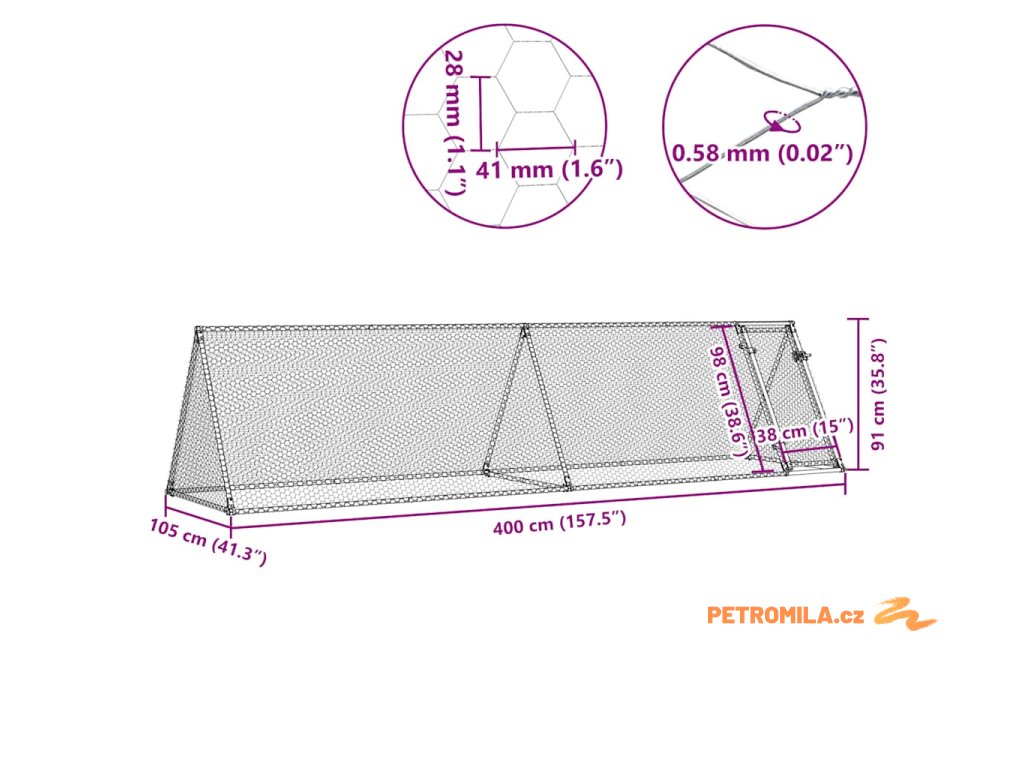 Klec pro kuřata stříbrná 400 x 105 x 91 cm pozinkovaná ocel