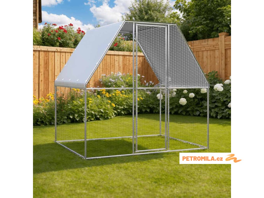 Klec pro kuřata stříbrná a šedá 2 x 2 x 2 m pozinkovaná ocel